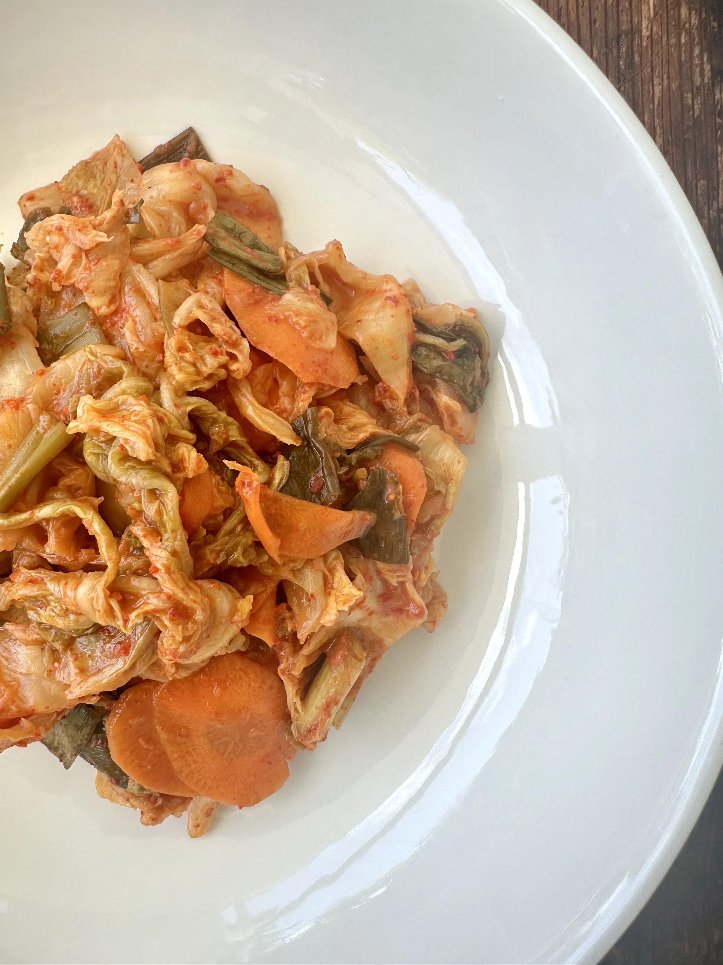Pop in a big bowl, fold in chopped green shallot and chili paste, taste the salt level and adjust if needed.