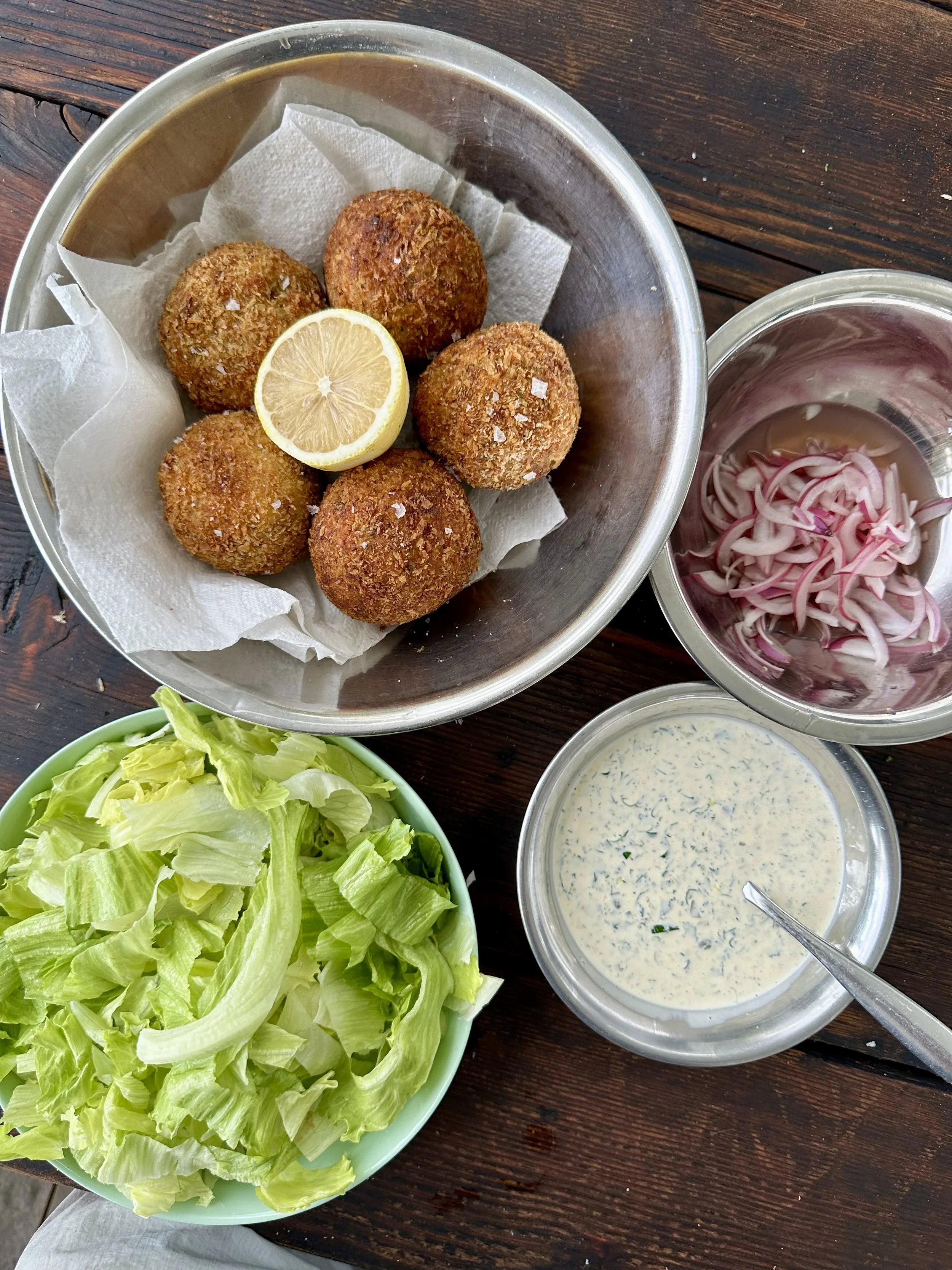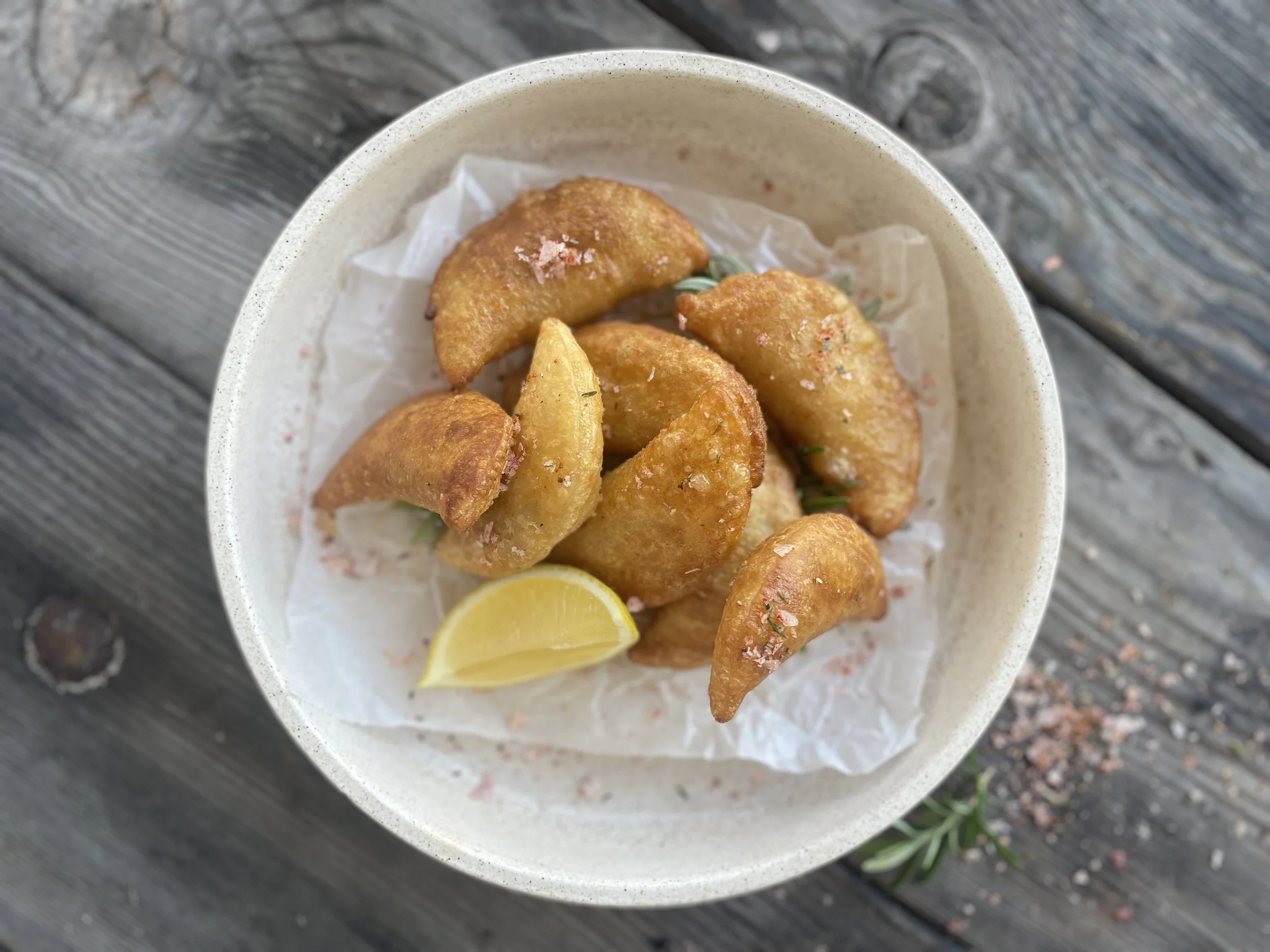Roll the potato balls in flour, egg wash then, breadcrumbs seasoned with paprika.