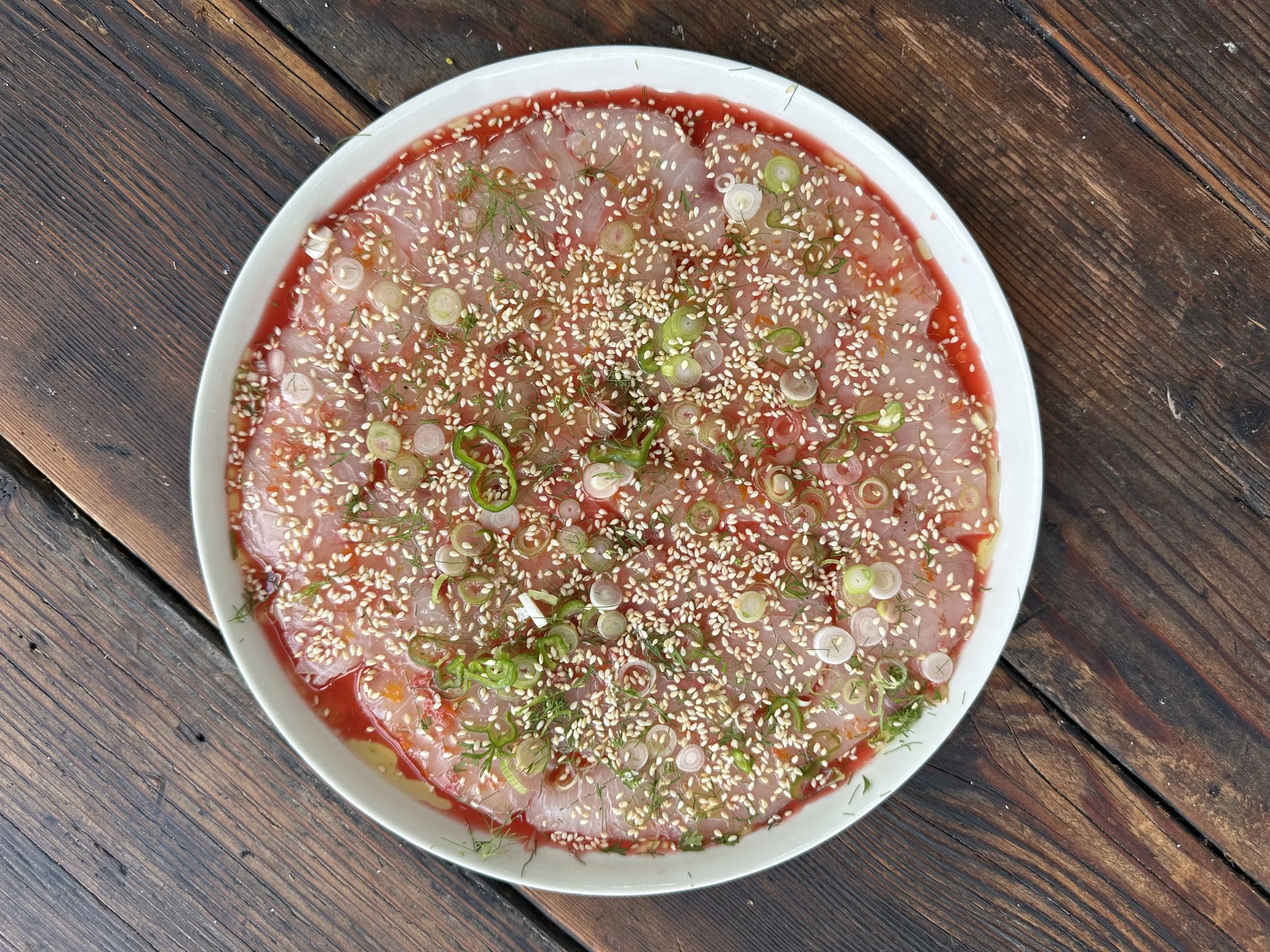 300g (serves 4) kingfish, salmon, tuna, snapper, scallops all great